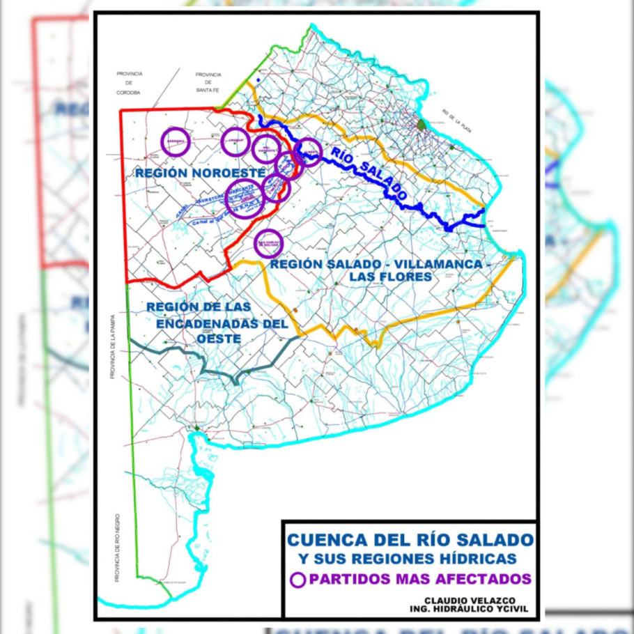 Velazco también advertía que las obras ya ejecutadas en los primeros tramos del Salado no bastaban. Planteaba la necesidad de intervenir arroyos y canales estratégicos -como el Vallimanca, Saladillo, Las Flores, y los Canales 9 y 11-, además de los ríos Arrecifes, Pergamino, Areco y Luján. Incluso propuso un canal de 310 kilómetros desde el límite con Córdoba para evitar el anegamiento crónico del noroeste bonaerense.