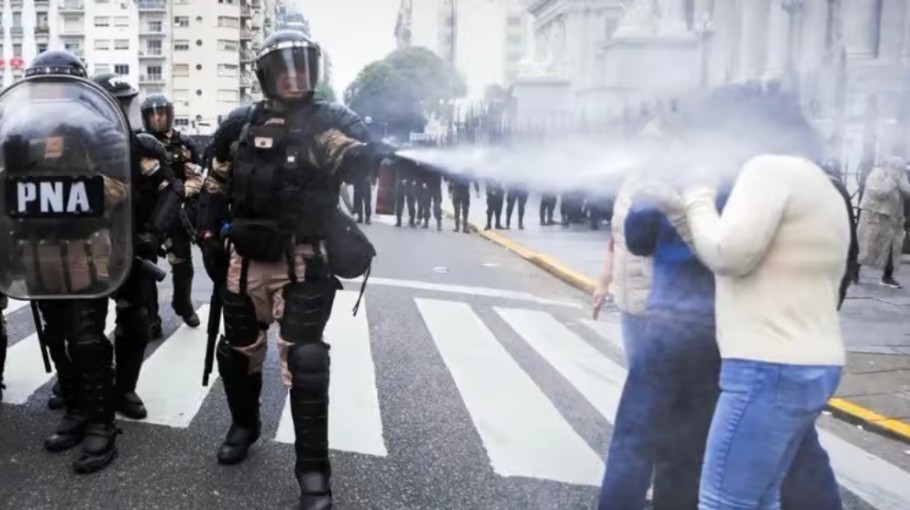 Uno de los escenarios más recurrentes de represión fue la marcha semanal de jubilados frente al Congreso, donde se denunciaron episodios de violencia contra adultos mayores, trabajadores, periodistas, reporteros gráficos y personas con discapacidad.