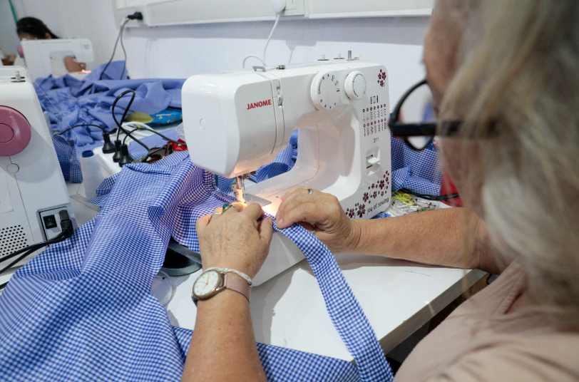 El intendente Federico Achával estuvo presente en una nueva jornada solidaria junto a las mujeres que participan de los talleres textiles que se brindan en la Casa de Desarrollo Humano de Tribarrial. En este espacio municipal de encuentro y formación, las vecinas aprenden distintos oficios y comparten la vida en comunidad.
