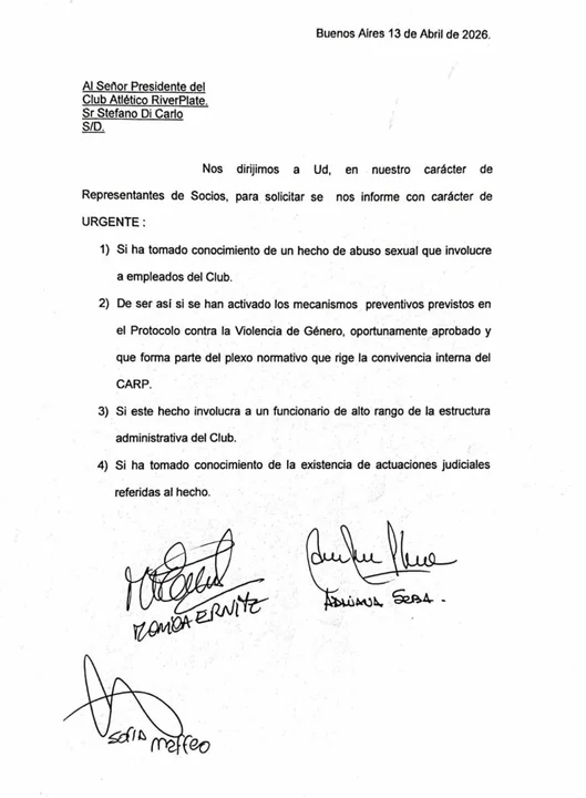 En paralelo al avance judicial, el caso ya genera ruido puertas adentro del club. Representantes de socios elevaron una nota formal al presidente Stefano Di Carlo el 13 de abril, en la que solicitaron explicaciones urgentes.