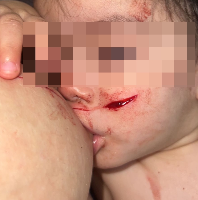En ese momento, su hija de 1 año y 5 meses se acercó y el agresor le rozó la cara con el cuchillo, provocando un corte que requirió siete puntos. Kiara recibió dos puntos en la boca.